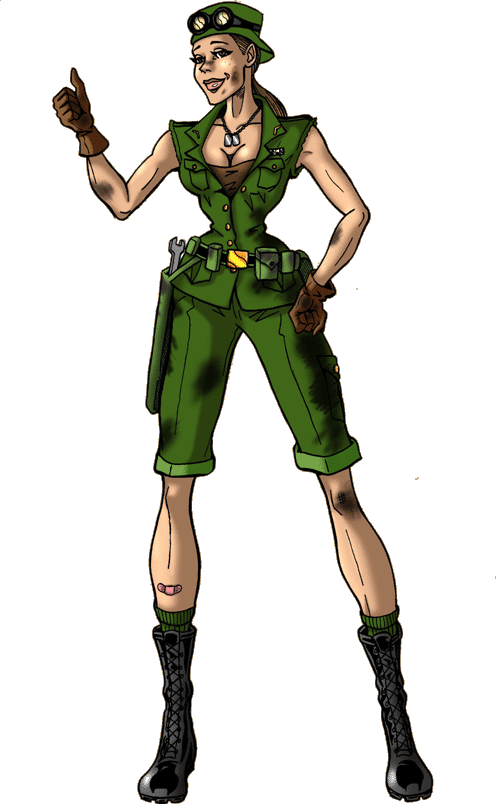 History - (from the personal comments of Sandra Steele) Becky Brown, call sign "The Kid", is the youngest of the Janes. Barely out of boot camp, she impressed me with her ability to drive and repair jeeps, tanks...anything, with the skill of a mechanical prodigy. I immediately requested her transfer to the Janes; something Becky has not made me regret. Kid idolizes her fellow Janes; Myself, for my leadership, Doc, well, because she's just too cool, Doll for her beauty and Big Red for her strength (even though the big Russian scares her a bit).